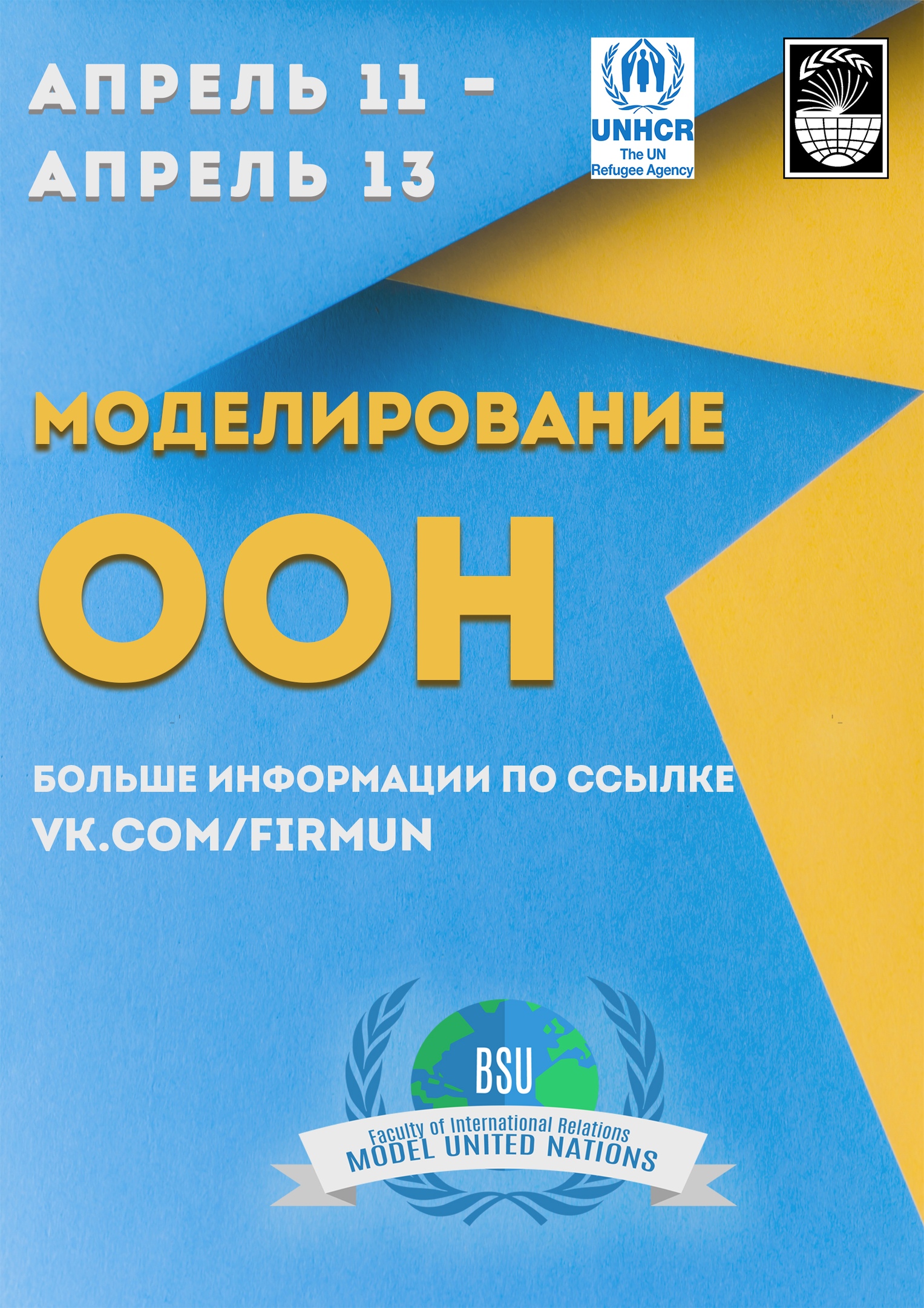 This Model UN was made by the support from the Belarusian State University, the United Nations High Commissioner for Refugees and International Non-governmental Association for Scientific Research, Information and Educational Programme “Evolutio”.