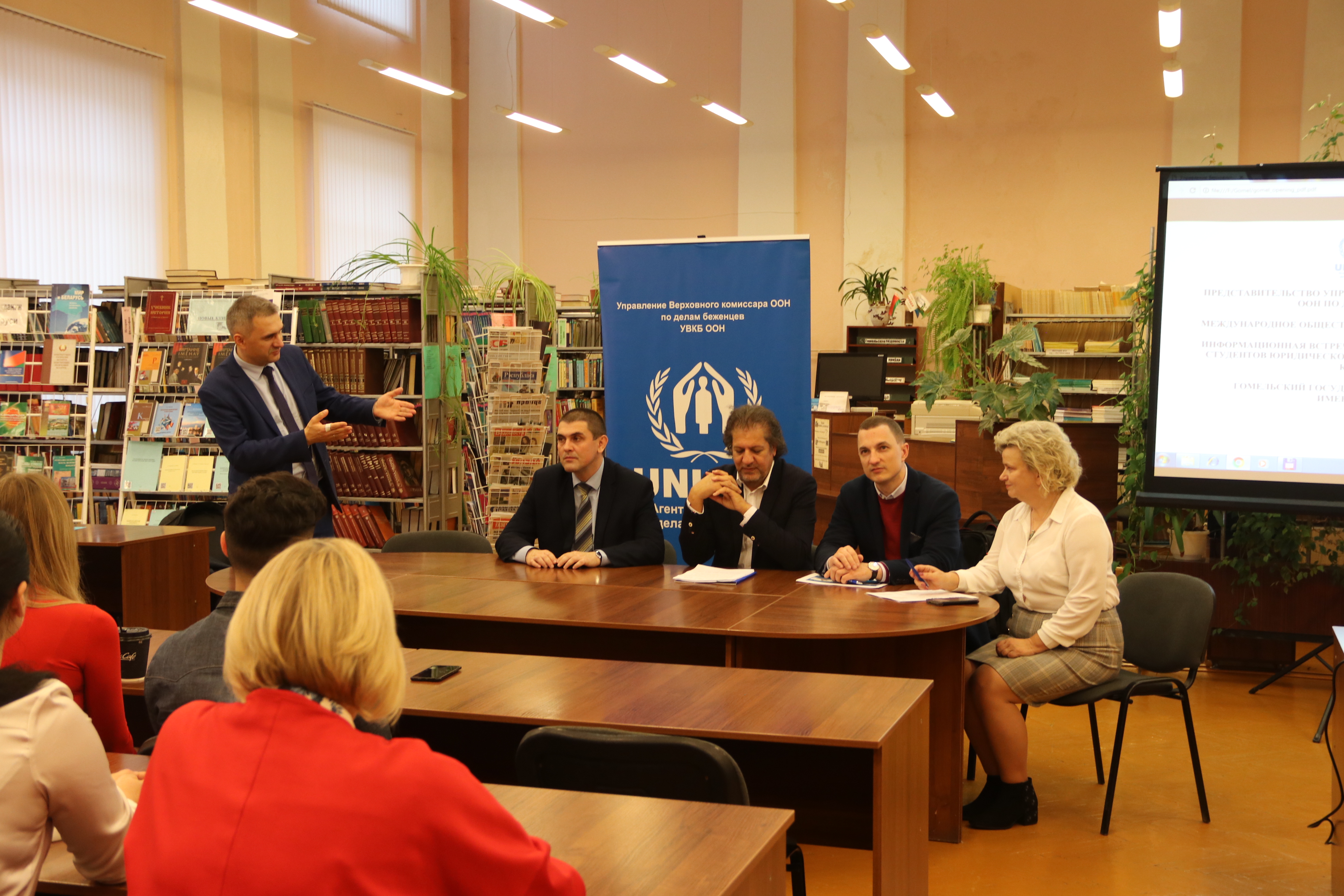 Jean-Yves Bouchardy, UNHCR Representative in the Republic of Belarus, Andrey Selivanov, Executive director of the INA "Evolutio" and Vice-Dean of the Faculty of International Relations of BSU, Yuri Nikityuk, vice-rector for the educational affairs of the Francisk Skorina Gomel State University and Irina Esmantovich, dean of the Law faculty of Francisk Skorina Gomel State University, spoke at the opening ceremony.
