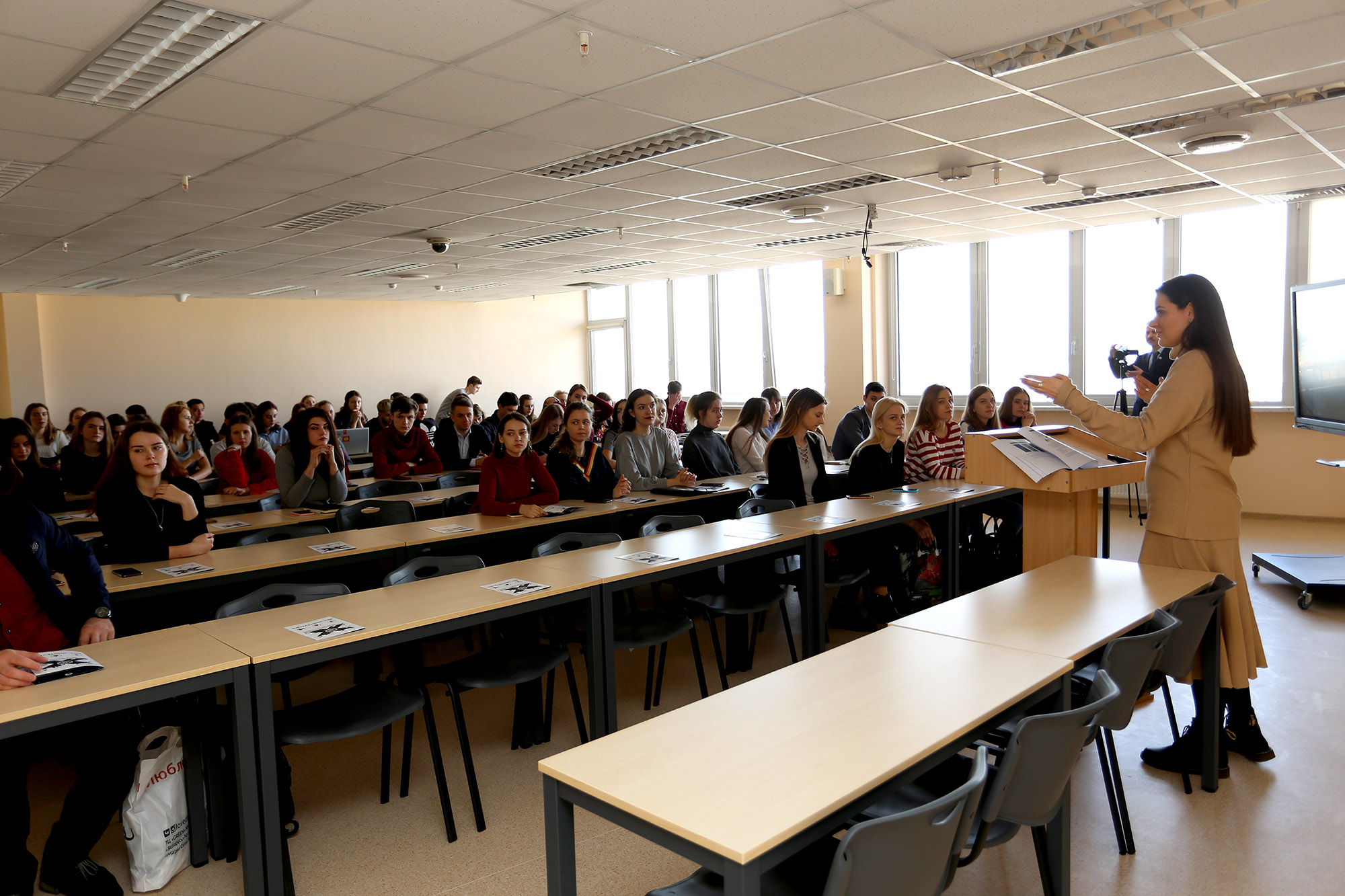 Специалист по вопросам коммуникаций Международной организации по миграции Ольга Борзенкова поделилась со студентами информацией о современных формах рабства и деятельности Организации по содействию организованной миграции и предупреждению торговли людьми.